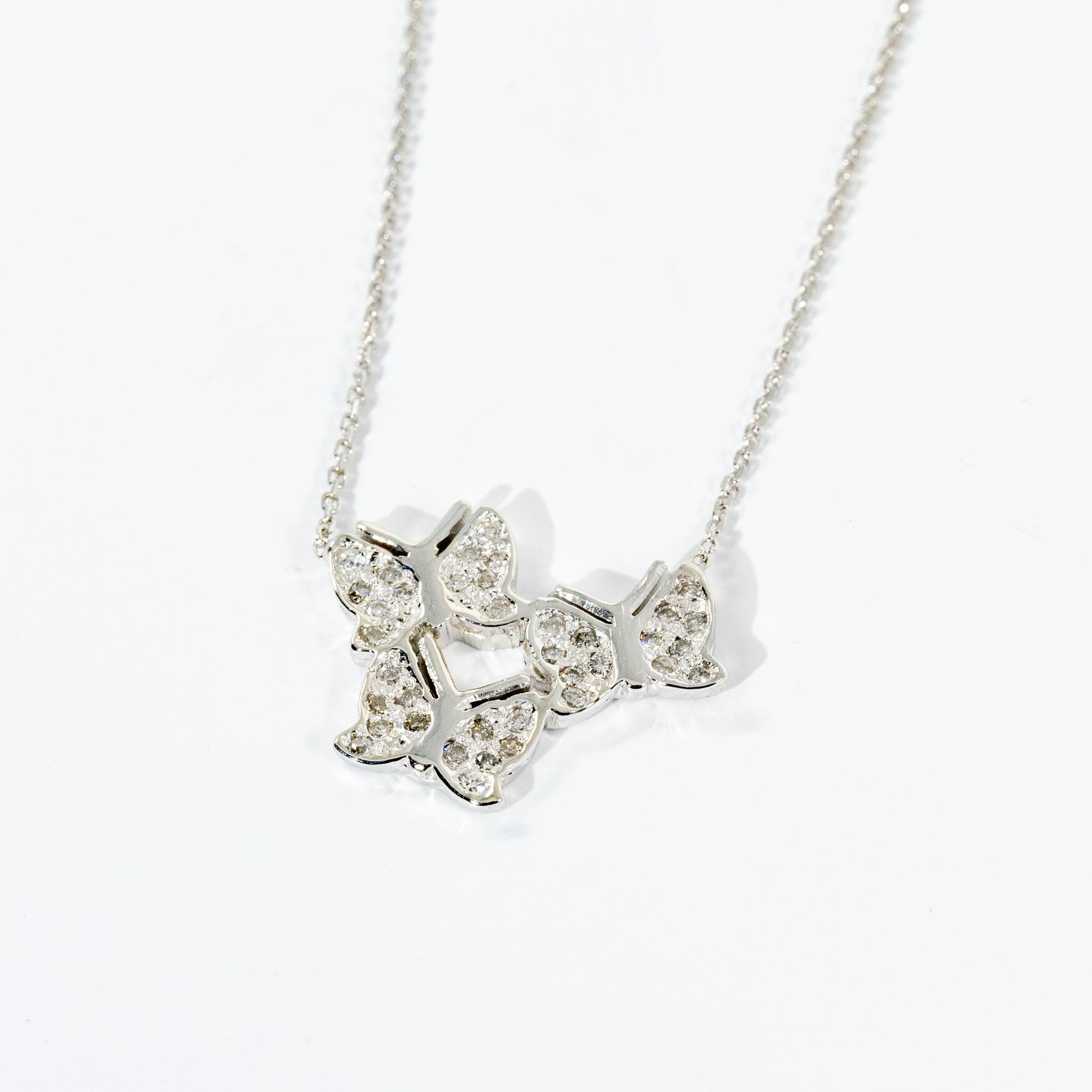 Elevate any outfit with this stunning 14kt White Gold Diamond Butterfly Necklace. Crafted from high-quality materials, this necklace features a delicate butterfly design adorned with sparkling diamonds. Exude elegance and grace with this timeless piece that will complement any style. Perfect for everyday wear or special occasions.