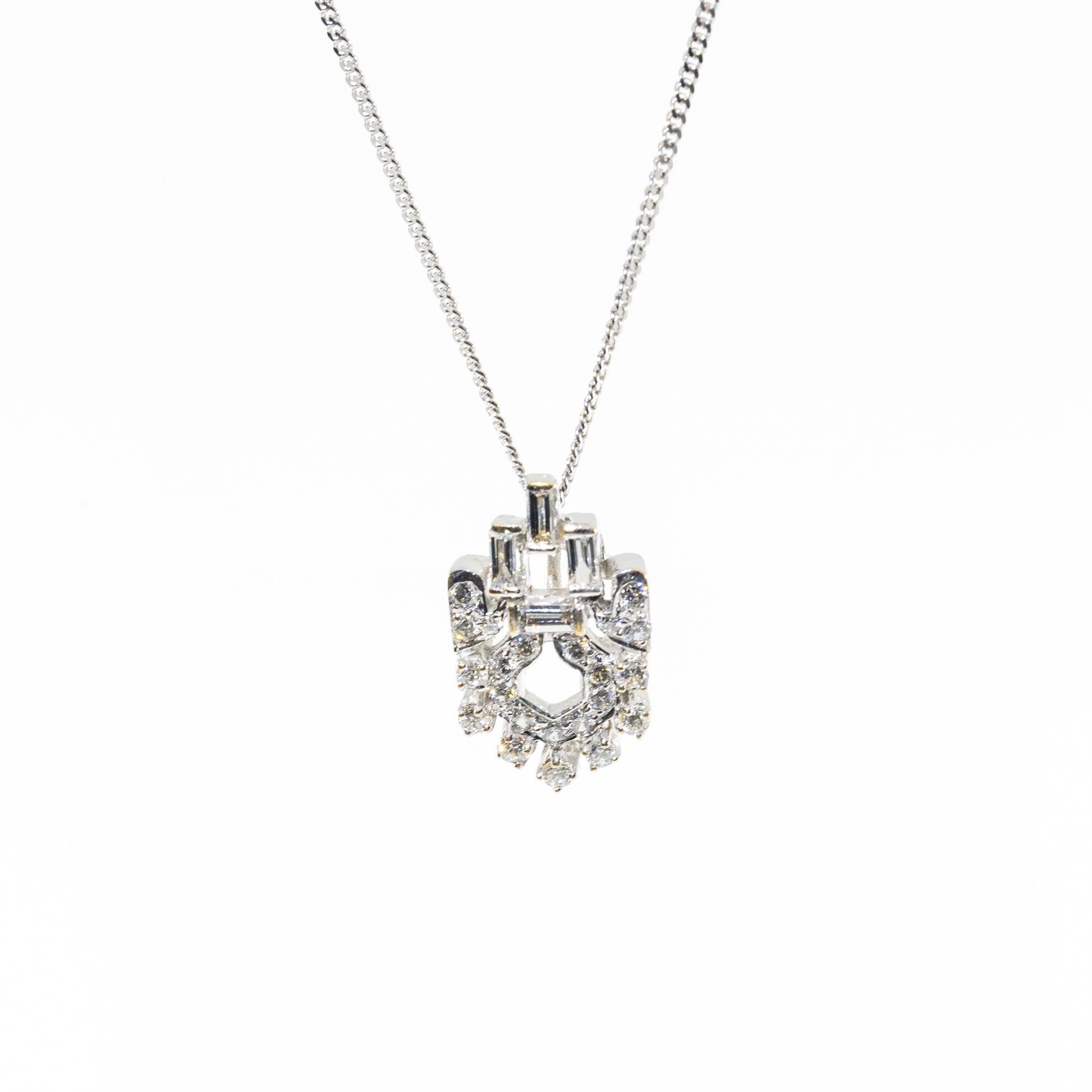 Expertly crafted from 14kt white gold, this stunning diamond pendant exudes luxury and sophistication. With a dazzling .30 carat diamond and an elegant 18 inch white gold chain, this piece is sure to become a timeless addition to your jewelry collection. Elevate your style with this exquisite pendant.