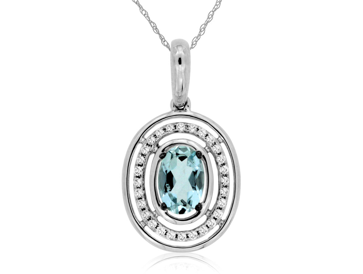 14k White Gold Aquamarine and Diamond Pendant