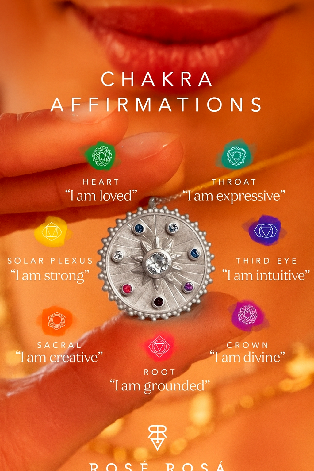 The Chaka Affirmation Charm is meticulously crafted in your choice of sterling silver or 14kt yellow gold, featuring an array of vibrant stones that symbolize the seven chakras. Each colored stone carries its unique significance, promoting balance and positive energy. This charm serves as both a meaningful accessory and a daily reminder of inner harmony and personal growth, expertly designed for those seeking to connect with their spiritual well-being.