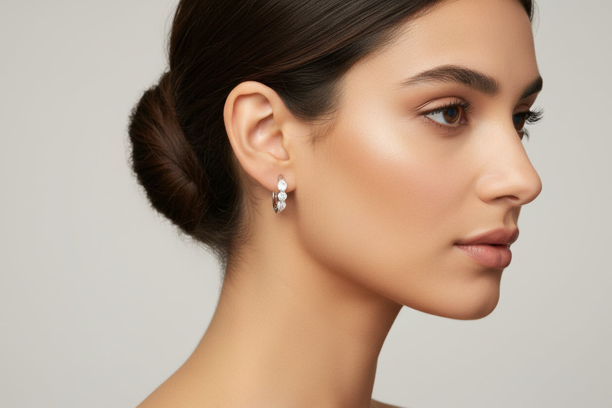 Elegant 14K white gold huggies featuring 0.50 carats of diamonds in a classic close-fitting design. These versatile earrings deliver sophisticated sparkle with everyday wearability, hugging the earlobe for a secure, polished look. The white gold setting enhances diamond brilliance while offering durability for regular wear. Perfect for layering or wearing solo, they transition seamlessly from day to evening occasions.