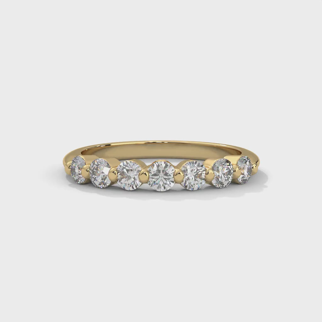 Crafted in lustrous 14k yellow gold, this wedding band features a total of 0.60 carats of round brilliant diamonds expertly graded F color and VS1 clarity. The precise cut maximizes sparkle and brilliance, creating an elegant and timeless symbol of your commitment. Durable yet refined, this band pairs beautifully with any engagement ring or serves as a stunning standalone piece for everyday wear.