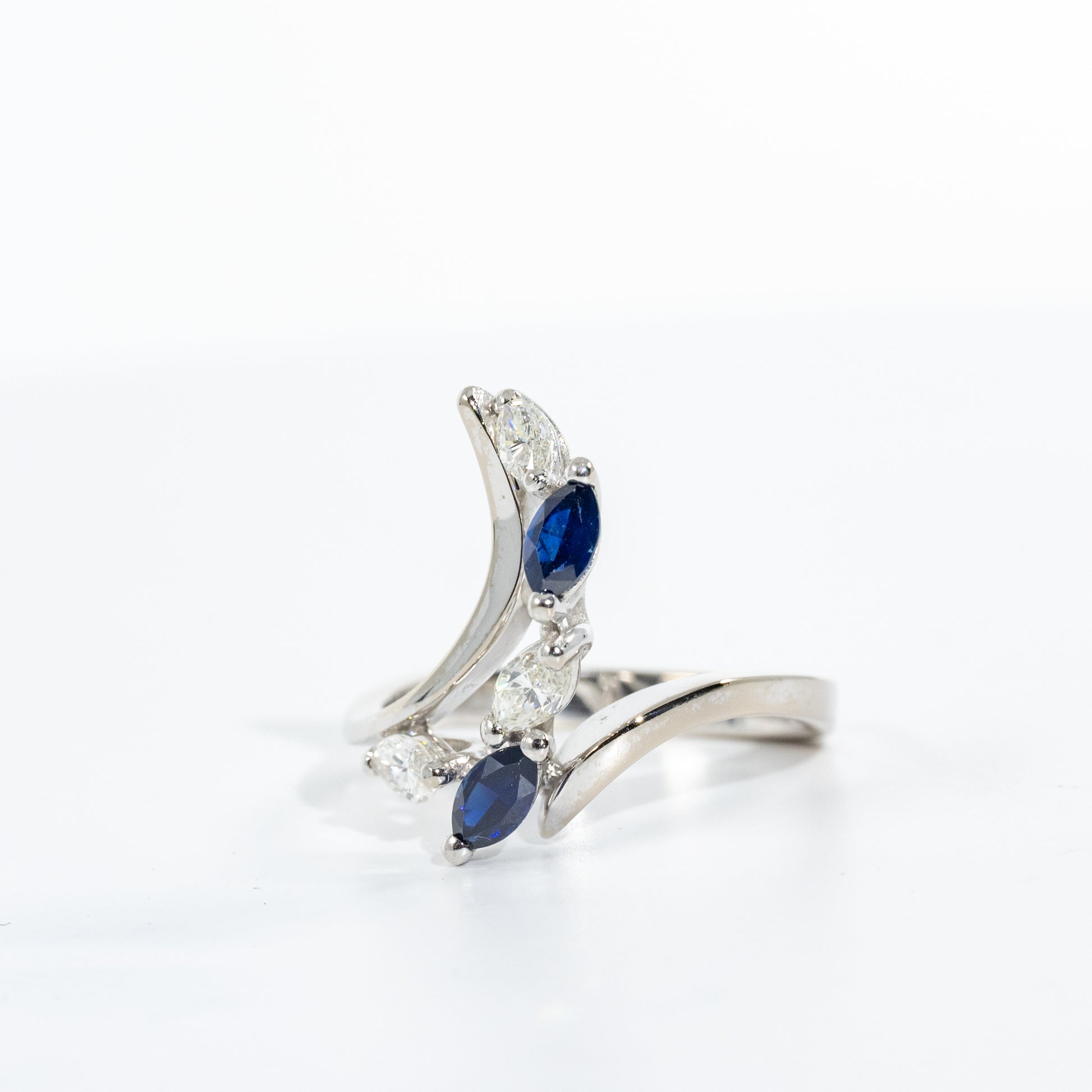 Expertly crafted from 18k white gold, this stunning ladies ring features a brilliant sapphire stone weighing .20ct and sparkling diamonds weighing .30ct. With its dazzling combination of precious gems, this ring effortlessly adds elegance and sophistication to any outfit.